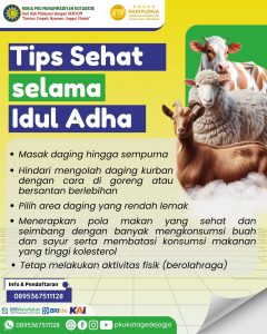 Assalamualaikum Sahabat PKU KG ================================== Tips Sehat Selama Idul Adha 🍖💛 Merayakan Idul Adha bukan hanya soal berkurban, tapi juga menjaga tubuh tetap sehat agar